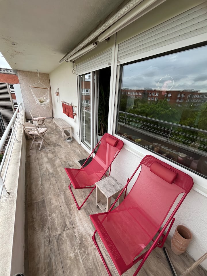 شقة وسط المدينة مشرقة + شرفة