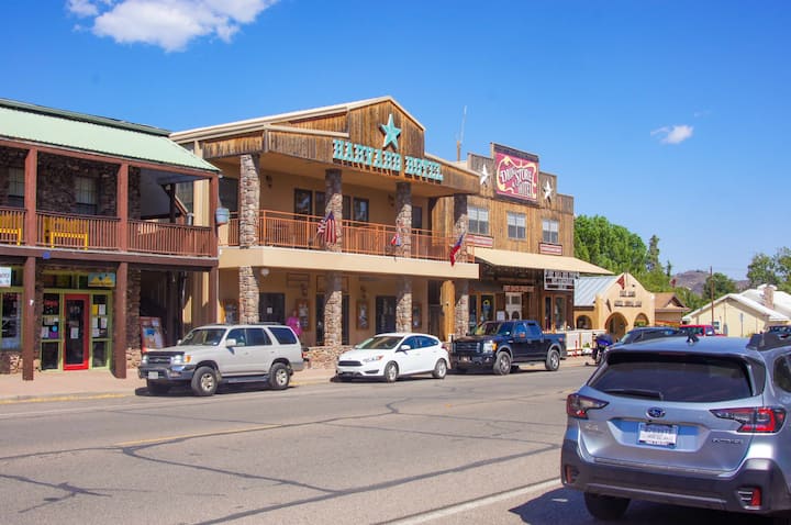 توفر غرفة كاسا كينج، التي تقع فوق متجر هدايا جافيليناس وهوليهوكس المحبوب، مقعدًا في الصف الأمامي لسحر فورت ديفيس. مع سرير كبير الحجم، وتصميم مريح، والوصول السريع إلى الشرفة الأمامية المشتركة، فهو المكان المثالي للاسترخاء بعد يوم من استكشاف الجبال. استمتع بتناول القهوة مع شروق الشمس فوق شارع ستيت أو استرخ مع مشاهدة التلفزيون في نسيم غرب تكساس البارد.