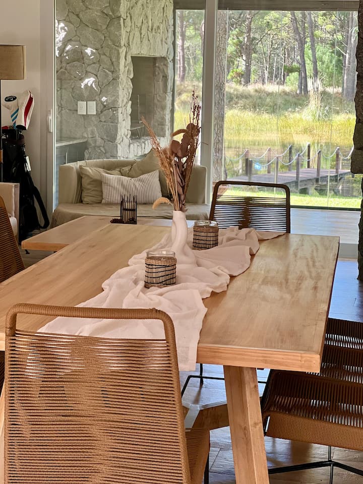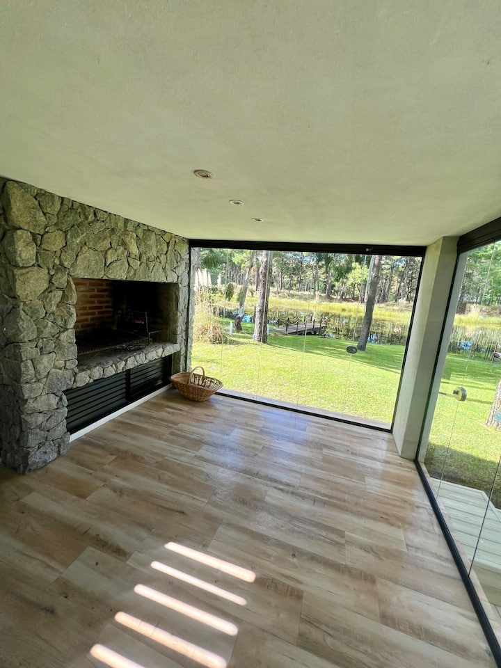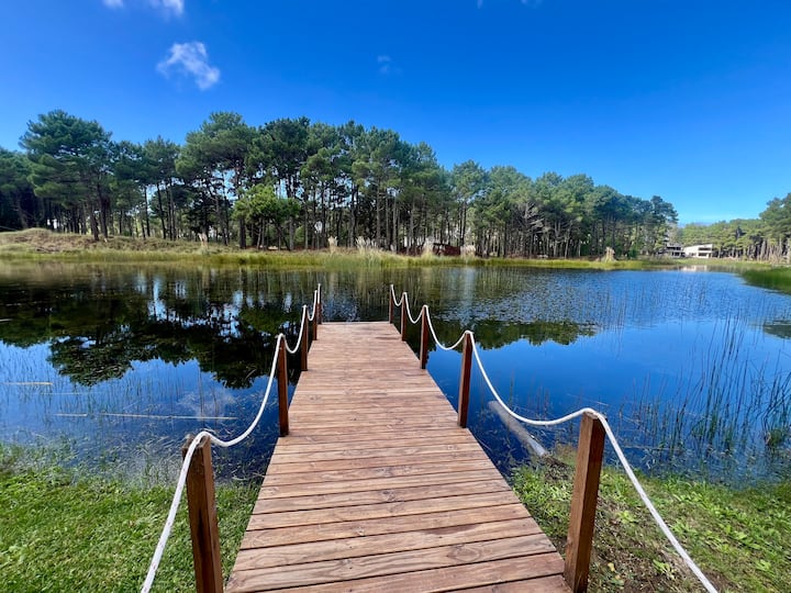 منزل في الغابة مع بحيرة
