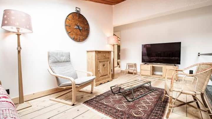 مرحبًا بك في Maison des Neiges، وهي شقة فاخرة مساحتها 75 مترًا مربعًا حيث تلتقي الراحة الحديثة بالدفء الأصيل للخشب. انسَ السيارة والحافلات والخطوات التي لا نهاية لها مع الزلاجات على كتفك: هنا، تبدأ المغامرة على ممسحة الباب.