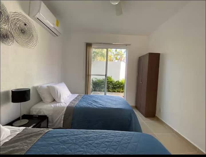 شقة في الطابق الأرضي مع تراس ومكيف هواء وواي فاي وحمام سباحة