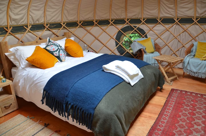 موقع تخييم فاخر بأكمله مع أحواض استحمام ساخنة وكارافان