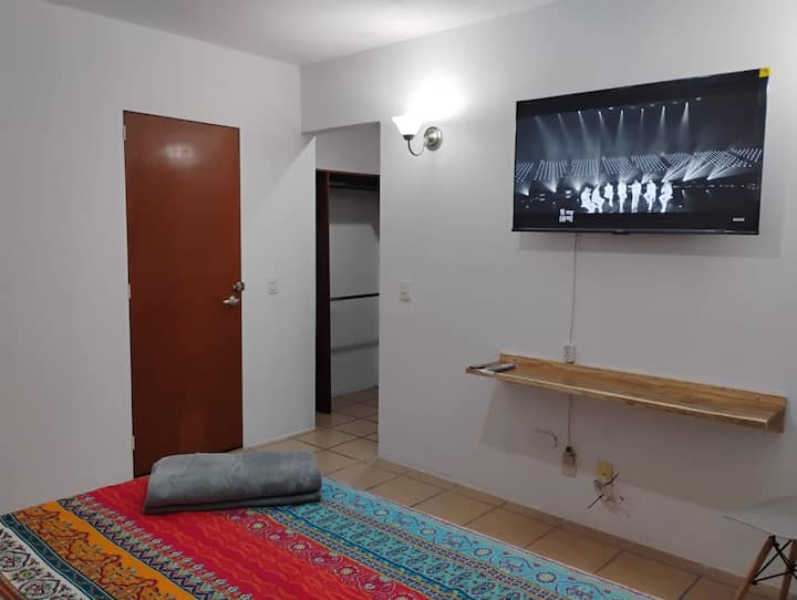 غرفة خاصة مع حمام، شاشة وثلاجة صغيرة