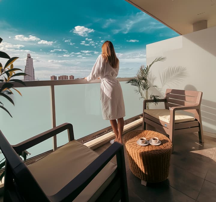 جناح فاخر · نمط فندقي · حمام سباحة وسطح