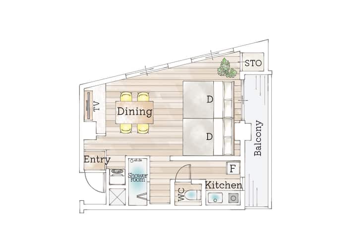 【إقامة طويلة على بعد】 5 دقائق من هيغاشي شينجوكو | 4 ضيوف | 33.5 متر مربع