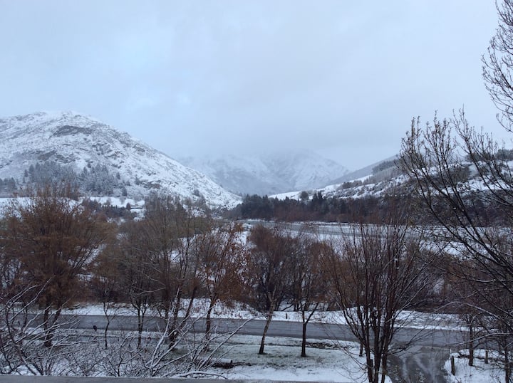حمام داخلي كبير وإطلالات على النهر والجبل