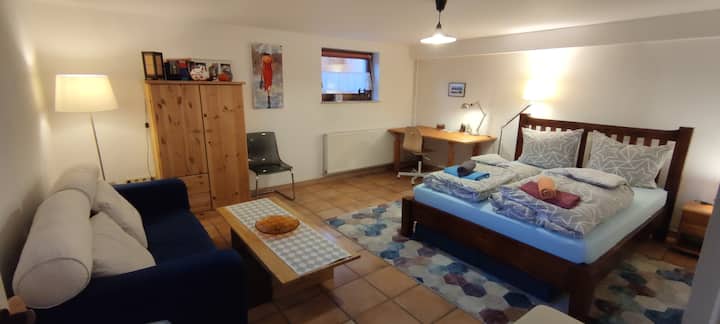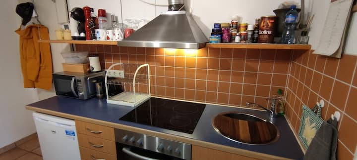 شقة مريحة للغاية لشخصين، بما في ذلك المكتب والمطبخ