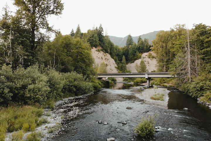 كوخ مريح على ضفاف النهر - حوض استحمام ساخن - بالقرب من جبل رينييه