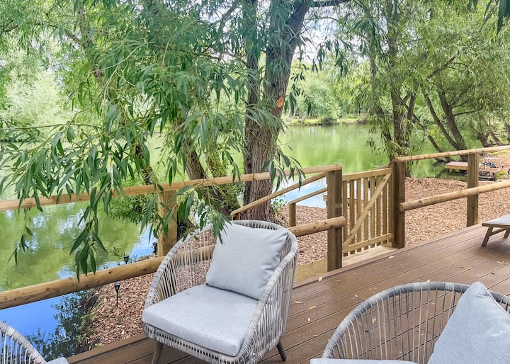يقدم Waterside Lodge، الجديد لعام 2025، ملاذًا هادئًا وخلابًا في Fairwood Lakes.