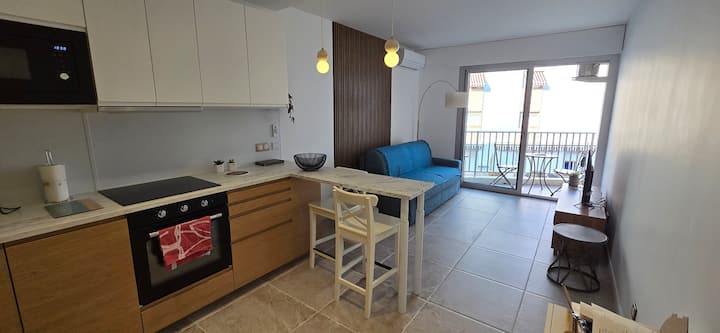 استوديو بإطلالة على البحر وموقف سيارات ومكيف هواء