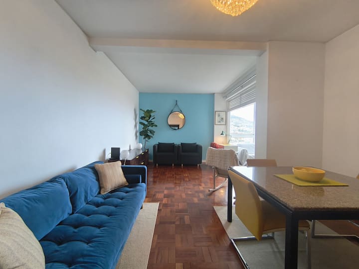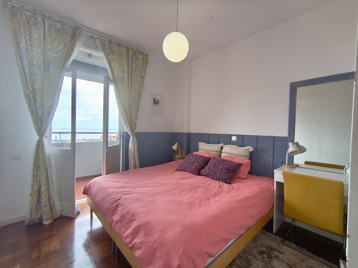 غرفة زرقاء بإطلالة بالقرب من حديقة سانتا لوزيا!