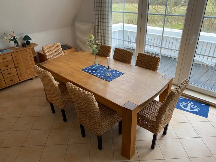 تأجير العطلات هو مشروع خاص بنا. وقعنا في حب الجزيرة وخاصة هذا المكان. لديه أجمل شاطئ في روجين بالنسبة لنا. إنه استرخاء خالص للمشي على طول الشاطئ الذي يبلغ طوله 10 كيلومترات والعثور على بعض الأحجار الكهرمانية الصغيرة. في جولاتنا بالدراجات الكهربائية، نكتشف دائمًا معالم جديدة. يسعدنا جدًا إذا شعرت بنفس الطريقة.