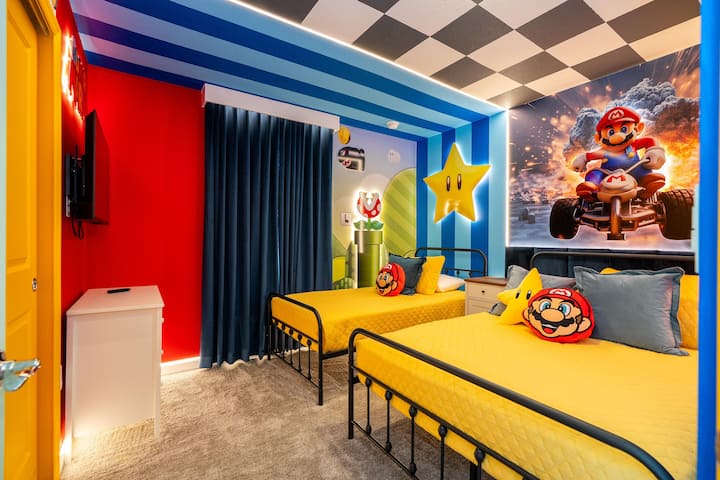 5. غرفة سوبر ماريو بروس (سرير كامل الحجم + سرير بحجم مزدوج)