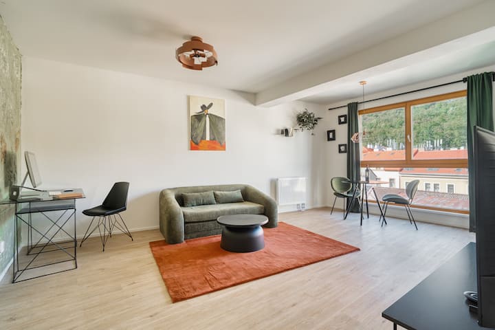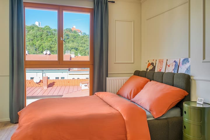 شقة براغ جديدة تمامًا مع إطلالة وموقف سيارات
