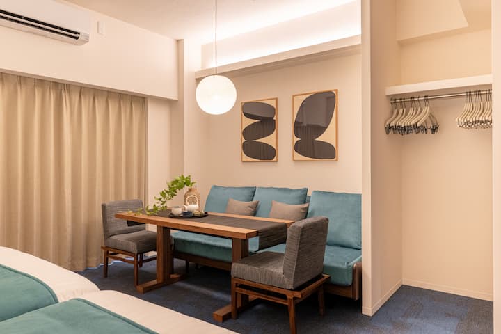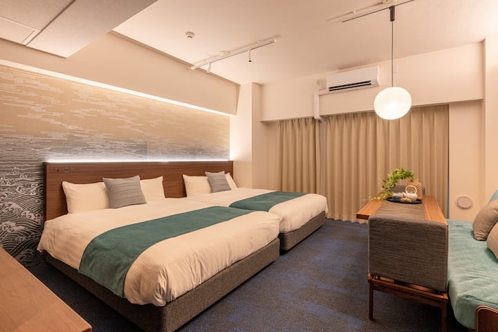 【فندق توكي 季】2 سرير مزدوج + غرفة نوم بأريكة