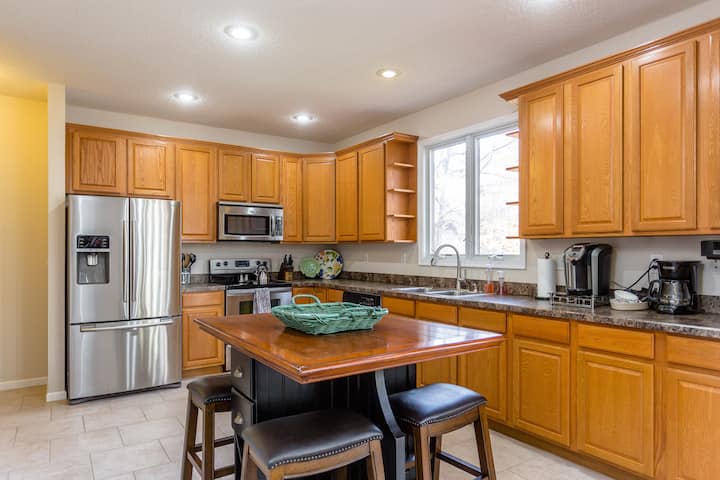 اصنع ذكريات عائلية مذهلة أثناء إقامتك في هذا البيت في قلب منتجع ماسانوتين! استمتع بالأجواء الهادئة والإطلالات الجميلة من هذا البيت الفسيح والمريح. النوافذ الكبيرة تسمح بدخول الضوء الطبيعي. يحتوي المطبخ على مساحة كبيرة لعدة طهاة، وتوفر الطاولات في المطبخ وغرفة الطعام المجاورة مساحة كبيرة لمجموعة كبيرة. عندما تكون مستعدًا لقضاء وقت ممتع في المساء، يمكنك الاستمتاع بالشرفة المغطاة أو غرفة الوسائط التي تتميز بتلفزيون بشاشة كبيرة ومدفأة غاز والكثير من المقاعد المريحة. يقع على بعد دقائق فقط من المطاعم والمحلات التجارية والتزلج وركوب الدراجات الجبلية والمزيد.