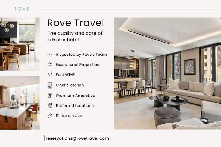 Rove Travel هي علامة تجارية لإيجارات العقارات الفاخرة المنسقة في أفضل الوجهات في جميع أنحاء الولايات المتحدة. تقدم عقارات Rove تجارب سفر سلسة دون المساس بالترفيه أو الإنتاجية أو الفخامة. تحتوي المساكن على أثاث عصري ووسائل راحة متميزة ومواقع مثالية وإمكانية الوصول إلى خدمة 5 نجوم لأي شيء تحتاجه!