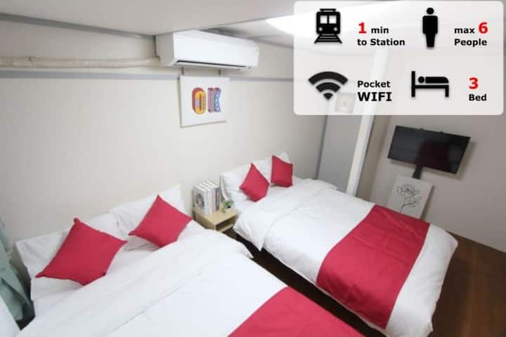 هذه الغرفة مريحة لثلاثة أسرّة شبه مزدوجة، 1-6 أشخاص♪