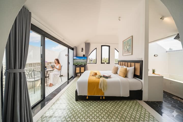في هوي آن، يتم الاهتمام بكل غرفة بإخلاص وتطور، تمامًا كما يحافظ شعب هوي آن على قيمهم القديمة. نريد أن نقدم لك ليس فقط مكانًا للراحة، ولكن أيضًا شعورًا بالعودة، والاستمتاع بشاي الصباح الباكر، والاستماع إلى الرياح في أشجار جوز الهند والاستمتاع بالدفء والقرب من منزلك.