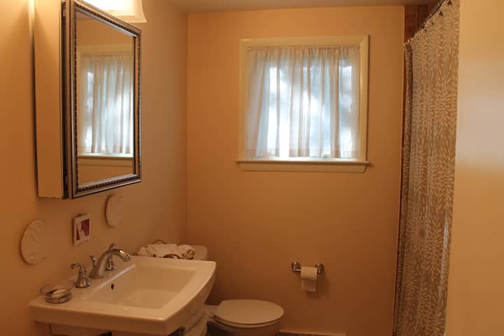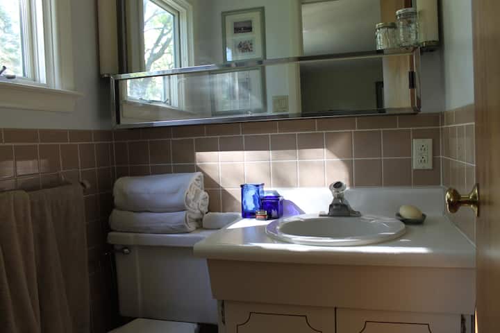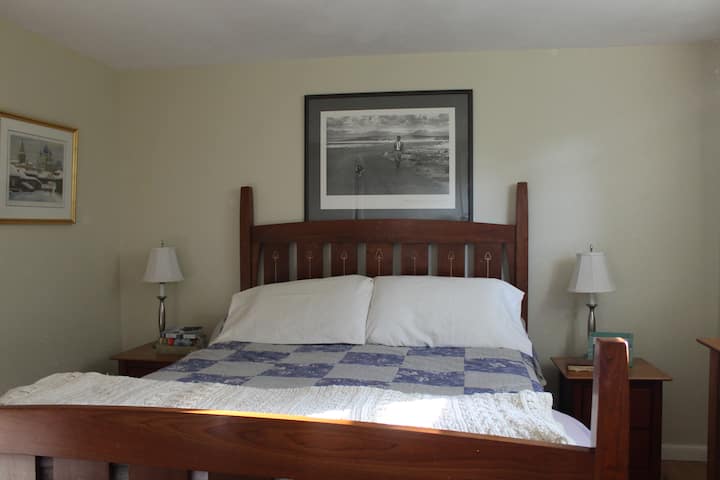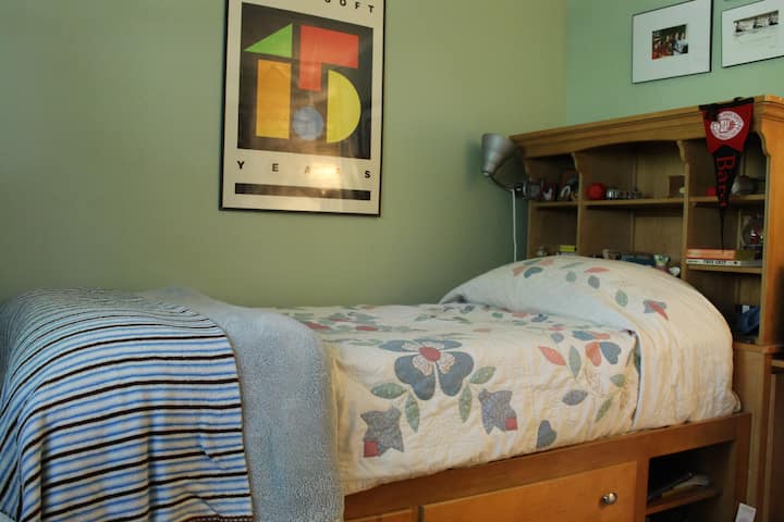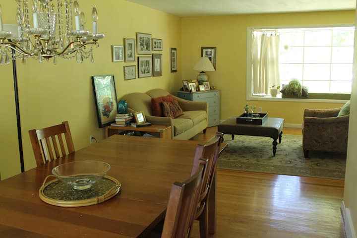 أنا وزوجي ربينا ولدين في هذا البيت. لقد كانت قاعدة رائعة لنا في هذا المكان الرائع في فينجر ليكس. لقد عشت في سياتل وهوبوكين في نيوجيرسي وسكرانتون في بنسلفانيا. بيتنا مليء بالكتب--حتى أنك ستلاحظ بعض الكتب التي يحمل ظهرها اسمي. يسعدنا منحك خصوصيتك للاستكشاف، لكننا دائمًا على بعد مسافة رسالة هاتفية فقط لتلبية أي احتياجات.