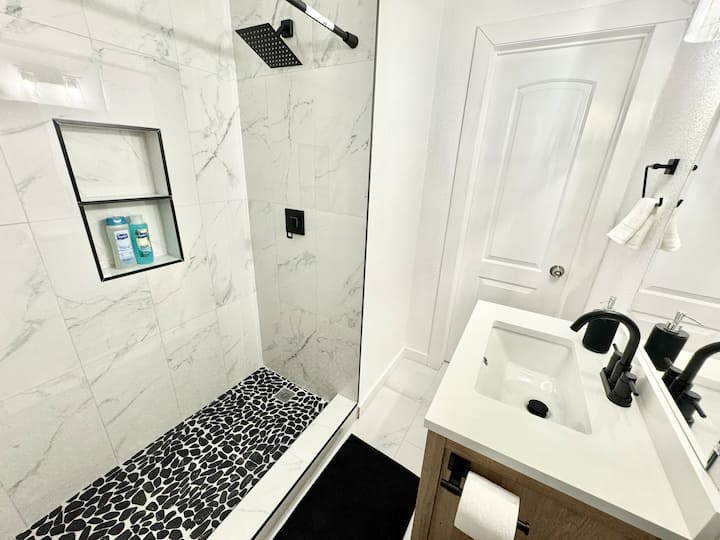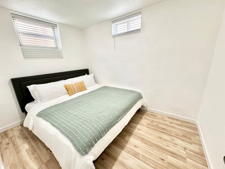 غرفة نوم جديدة وحديثة مع حمام واحد وسرير كينج وموقف سيارات مجاني