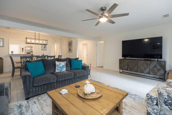 فيلا مناسبة للحيوانات الأليفة 3BR على مسافة مشي إلى الشاطئ، الجولف، التنس