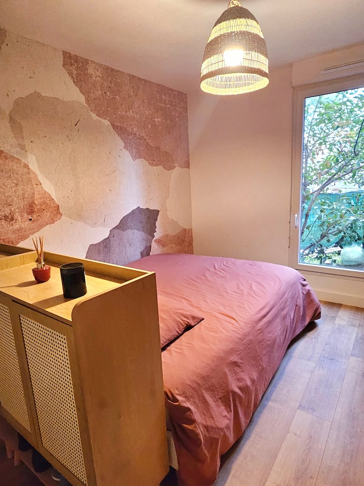 شقة مريحة مع حديقة