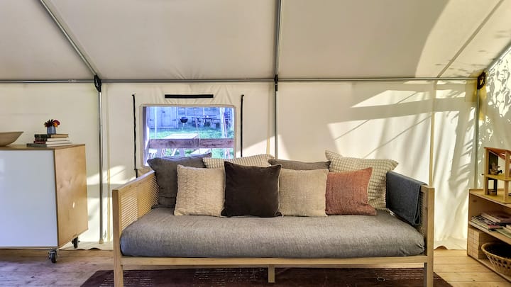 خيمة مع سرير كينج + سرير نهاري، منطقة لعب، دش ساخن!