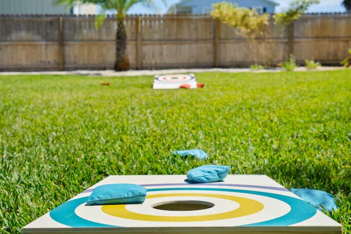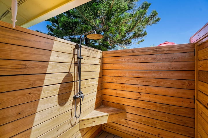 يستوعب هذا البيت الجذاب 6 أشخاص بشكل مريح، مما يجعله مثاليًا للعائلات أو المجموعات الصغيرة. في الداخل، ستجد ديكورًا مشرقًا ومرحًا وتلفزيونات ذكية وشبكة واي فاي سريعة للحفاظ على ترفيه الجميع. يأتي المطبخ مجهزًا بماكينة قهوة كوريج وكل ما تحتاجه لتحضير الوجبات، بينما تهيئ شواية البروبان في الخارج المسرح لطهي الطعام بسهولة. الغسيل سهل مع وجود غسالة ومجفف في الوحدة. في الهواء الطلق، يوفر الفناء الاستوائي مقاعد مريحة ومساحة للاسترخاء وألعاب كبيرة بما يكفي لجعل الجميع يبتسمون. سواء كنت تشوي حلوى الخطمي على النار، أو تسترخي مع مشروب في يدك، أو تستعد لقضاء يوم على الشاطئ، فإن هذا البيت مصنوع للتواصل والاسترخاء والمرح.