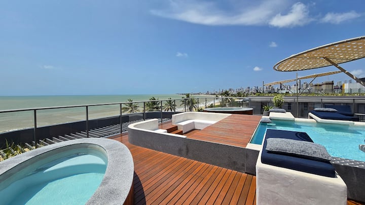 استوديو فاخر على الشاطئ مع إطلالة جانبية على البحر