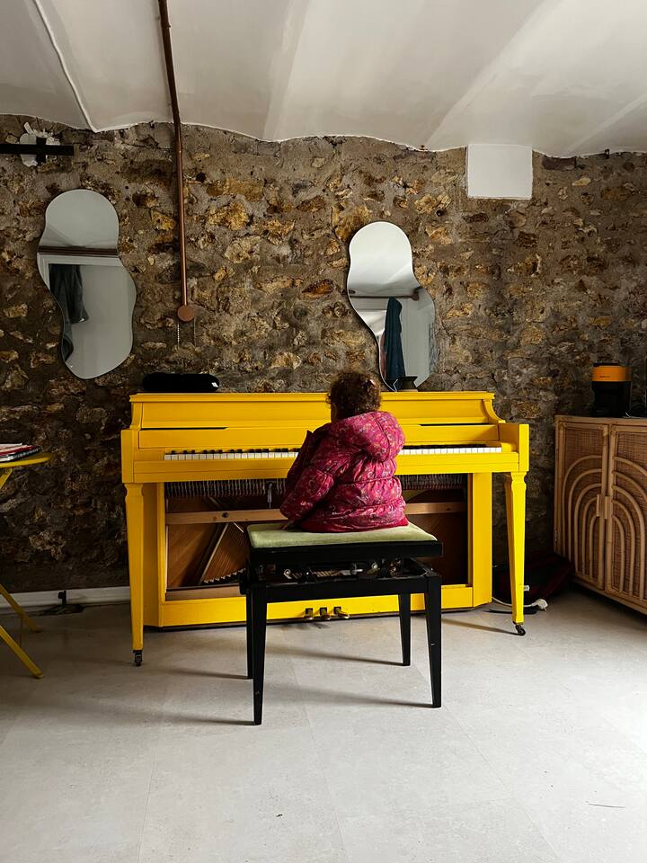 غرفة ضيوف ساحرة، مع إمكانية الوصول إلى الحديقة والبيانو.