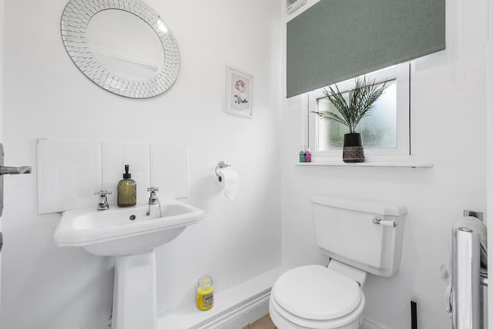 تحتوي غرفة المعيشة على أريكة زاوية كبيرة فاخرة مثالية للاستلقاء. يحتوي التلفزيون على Netflix إذا كنت ترغب في ليلة فيلم، وهناك أيضًا زاوية قراءة مريحة. مقاعد وتناول الطعام لستة أشخاص على طاولة الطعام التي بها أبواب فرنسية تؤدي إلى منطقة الفناء الحصوي والحديقة الكبيرة الأوسع.