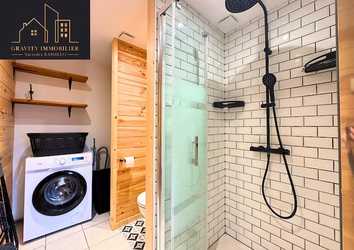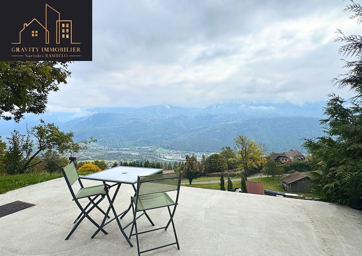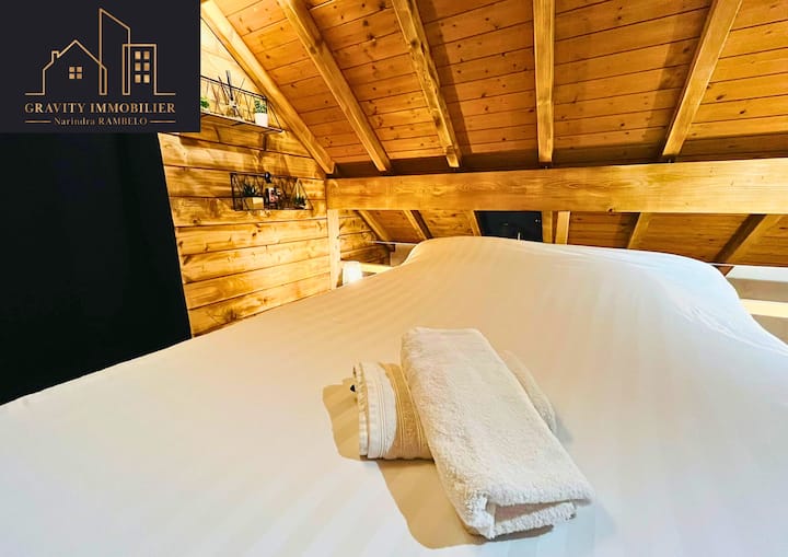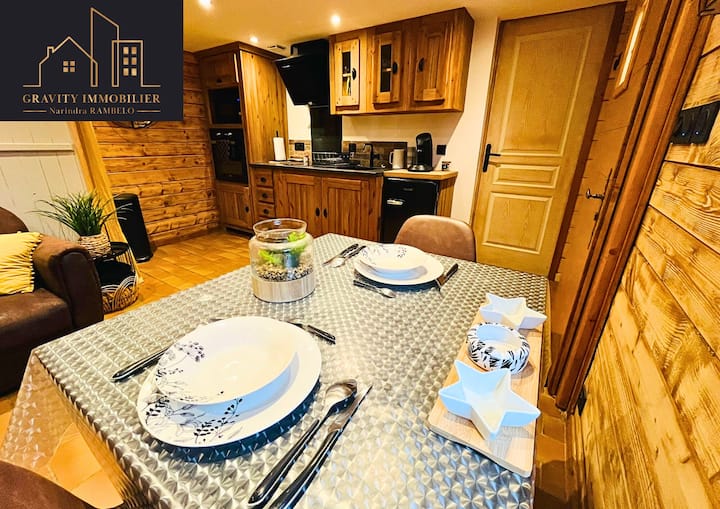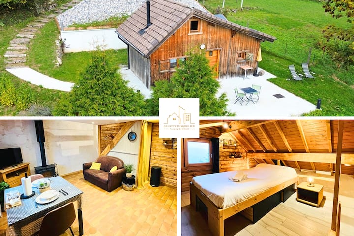 شاليه خشبي صغير مع طابق نصفي في الجبال