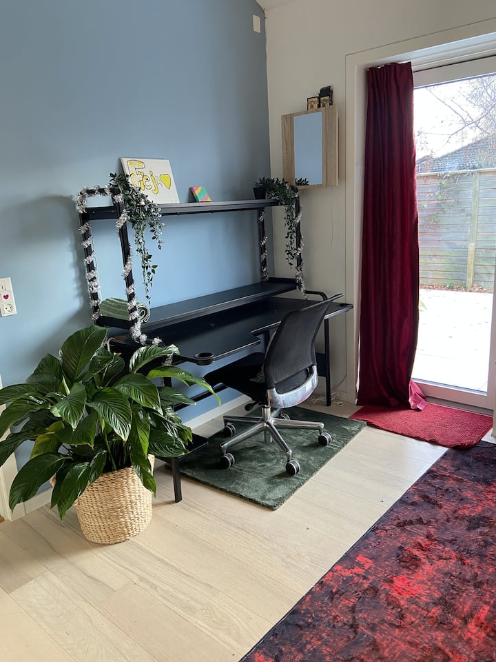 غرفة رائعة مساحتها 18.5 متر مربع تطل على التراس الخاص