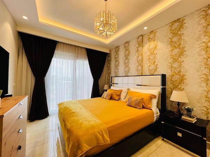 شقة فاخرة أنيقة بغرفتي نوم• حديثة ومريحة ومسبح المطار