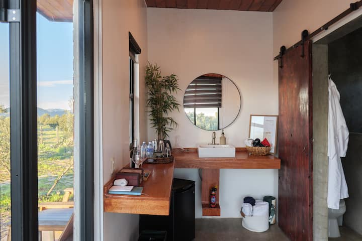 من المهم الإشارة إلى أن المنطقة الوحيدة المشتركة مع الضيوف الآخرين هي المطبخ الخارجي، المصمم لإعداد طعامك أثناء الاستمتاع بالمناظر الطبيعية.