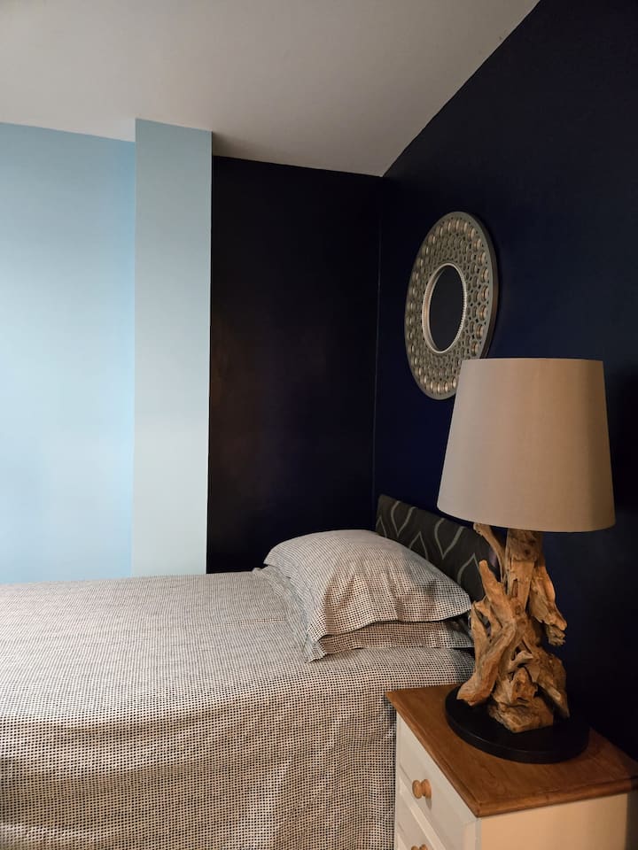 غرفة فردية مريحة مع دش خاص ومطبخ صغير
