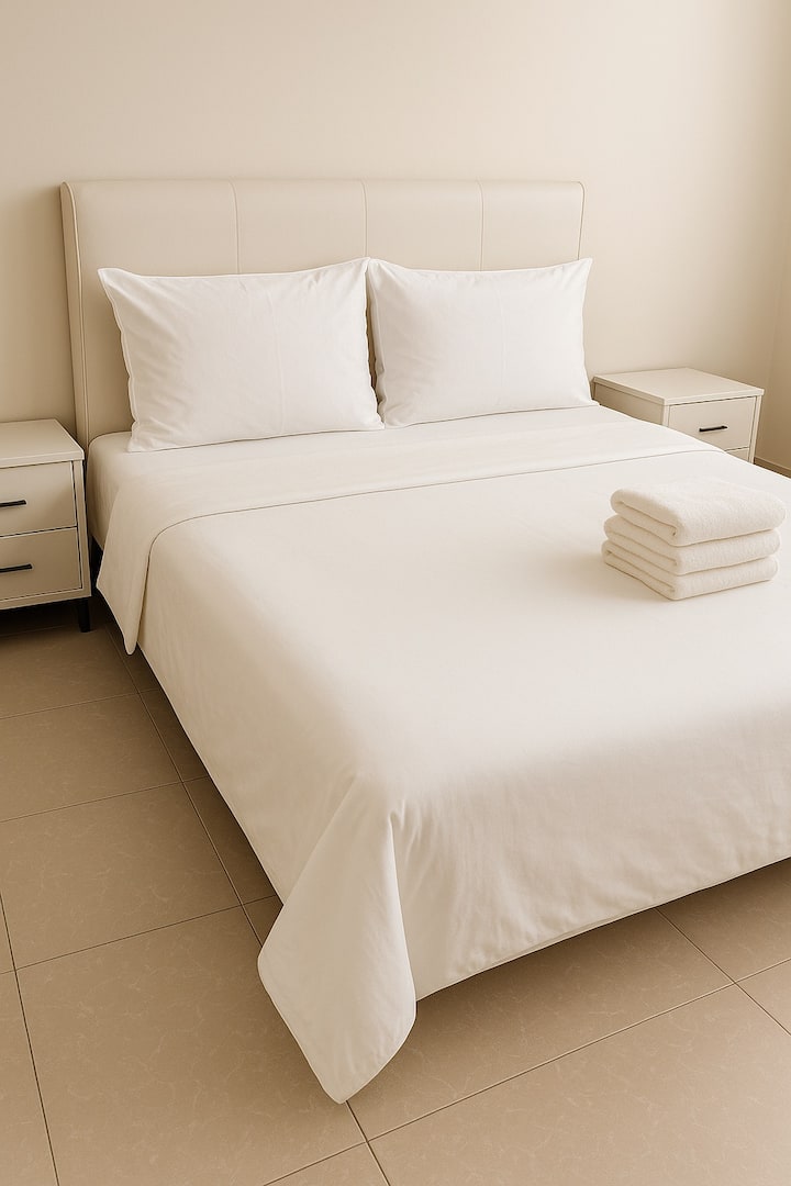 • مناشف ومناشف حمام وملاءات سرير وألحفة (تشمل المجموعة الأولية، وتنظيفها بشكل احترافي)