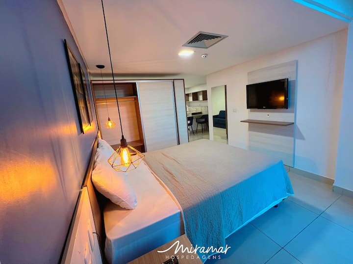 استمتع بشقة مريحة على نهر نوبيل، على بعد خطوات فقط من الواجهة البحرية لتامباو والفيرينا الشهيرة. مثالية لما يصل إلى 3 أشخاص، تحتوي المساحة على سرير مزدوج وسرير أريكة وتكييف الهواء لراحتك. استمتع براحة خزانة الملابس لتخزين متعلقاتك ومرآة. المطبخ الصغير مجهز بالضروريات لإقامتك. موقف سيارات دوار متاح مقابل 20 ريالبرازيلي في اليوم، يتم الدفع في مكتب الاستقبال. مثالية لتجربة سفرك في جواو بيسوا!
