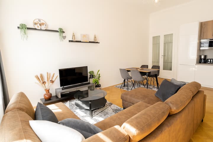 هذه هي إقامة Airbnb المثالية في براغ، حيث توفر مزيجًا مثاليًا من الموقع المركزي والراحة المعاصرة والأجواء الدافئة.