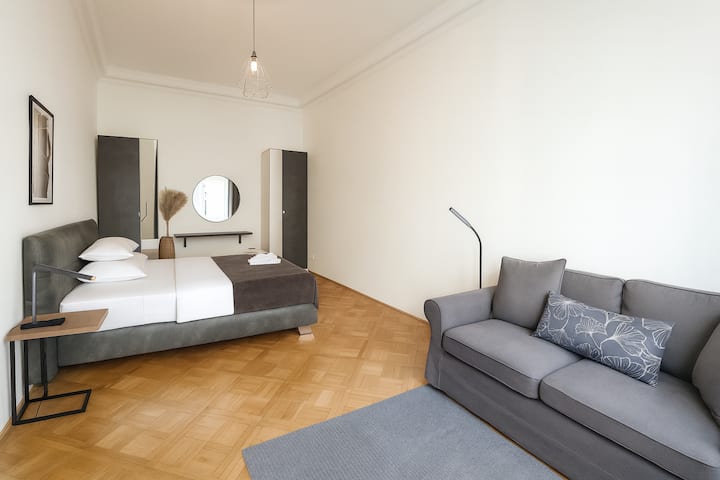 إذا كنت تبحث عن شقة عصرية في وسط براغ أو Airbnb بالقرب من ساحة وينسيلاس، فهذه هي القاعدة المثالية لاستكشاف سحر براغ.