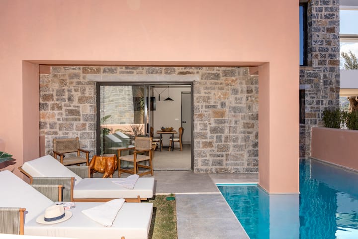 - بيوت عطلات للإيجار مخصصة للعطلات مع أماكن للجلوس في الهواء الطلق في اليونان