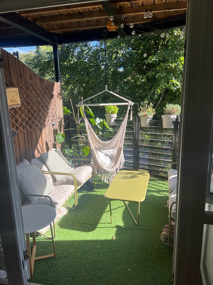 شقة مكونة من سريرين وحمامين مقابل حديقة مع شرفة