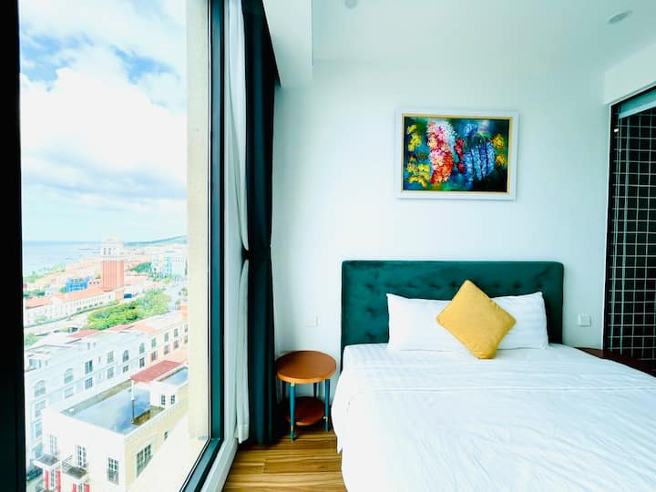 شقة بغرفتي نوم مع إطلالة على البحر والألعاب النارية