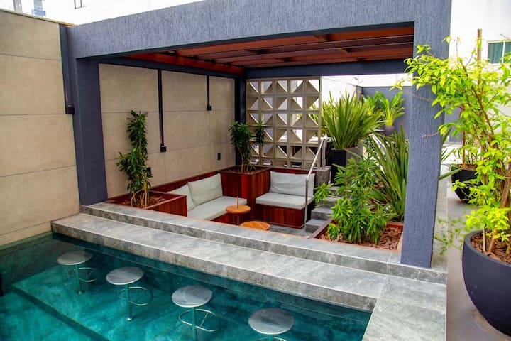 يعد هذا المكان أحد المساكن القليلة في المنطقة التي يتوفر فيها مسبح.