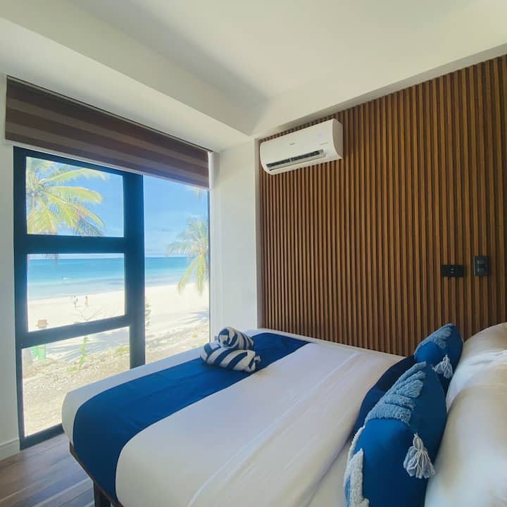 جناح المالك المطل على الشاطئ مع مناظر غروب الشمس والبحر