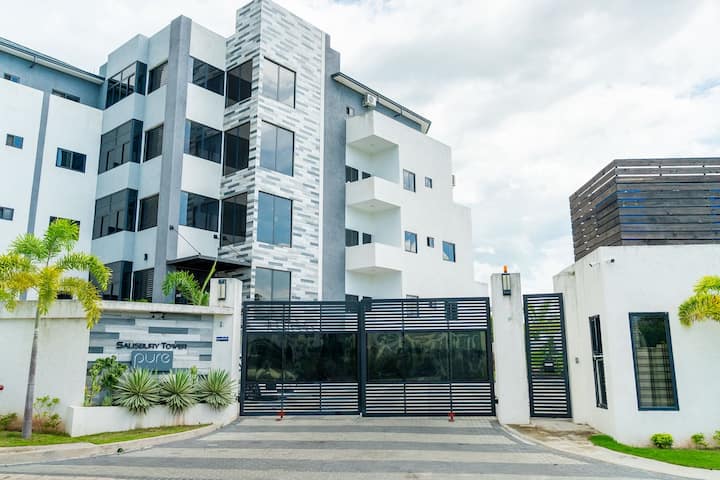 شقة فاخرة/حديثة بغرفتي نوم مع حمام سباحة وأمن على مدار 24 ساعة