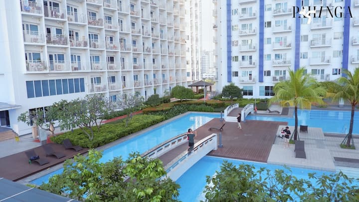 إطلالة على حمام السباحة غرفة نوم واحدة مع شرفة الطابق 17 ماكاتي