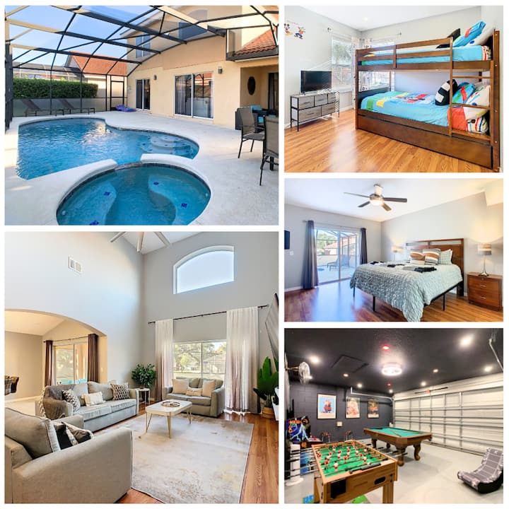 فيلا عائلية مكونة من 5 غرف نوم بالقرب من ديزني، حمام سباحة، غرفة ألعاب