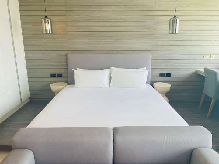 شقق فاخرة مطلة على البحر في شاطئ كالون | حوض استحمام في الشرفة | صالة ألعاب رياضية | حمام سباحة